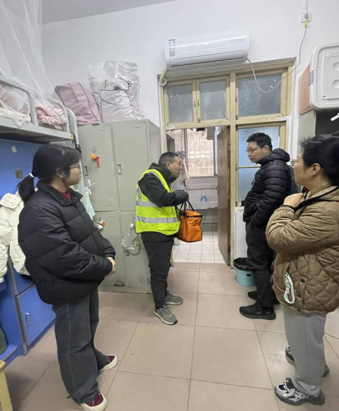 在汇德公寓,整改小组现场办公,了解具体情况,有针对性封堵了老鼠出没路径,同时放置了粘鼠板。走访相关宿舍,查看洗澡热水水质情况,并通知服务商定期清理。在汇岚公寓,整改小组实地查看同学们反馈的垃圾清理问题,现场调研研判,通过更改楼梯道口垃圾桶设置和摆放,增加垃圾清运的频次等方式解决相关问题。