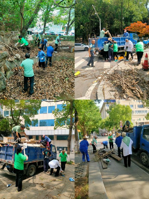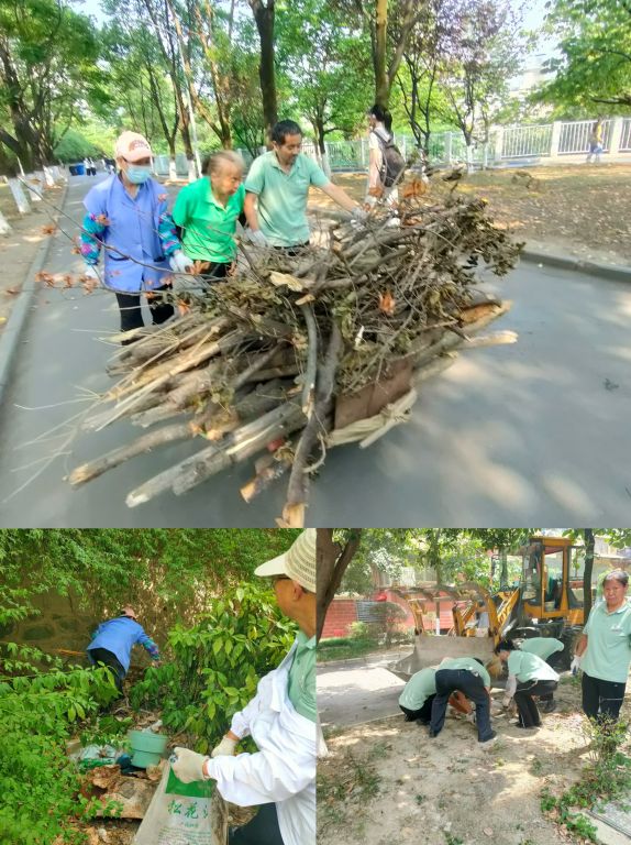 学校组织师生志愿者、物业保洁人员成立专项工作组,对背街小巷、老旧小区及公共绿化带开展"地毯式"清扫。工作人员手持扫帚、夹子等工具,清理路面垃圾、枯叶杂草,疏通堵塞沟渠,对楼道堆积物、卫生死角进行集中清运,清理各类垃圾,整治卫生死角。同时,对绿化带内的枯枝烂叶、白色污染物进行深度清理,补植绿化苗木,修复破损路面,有效提升校园周边环境品质。