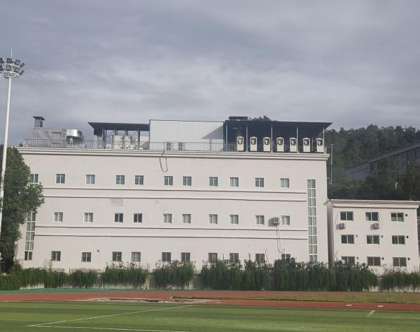 二、动物中心外墙真石漆、楼顶防护栏施工完成。