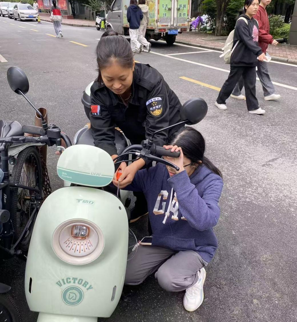 育人不仅在于润泽心田,也体现在及时的行动中。在汇岚A栋,一位同学为了拆卸电动车的外包装保护框架,向门卫王友枝借锤子。王阿姨见学生身形单薄、颇显吃力,便主动上前接过工具,利落地帮忙共同拆除了电动车的架子。这件在王友枝眼里微不足道的小事,却帮助学生解决了大难题。这份源于观察与主动的援手,让学生看到的不仅是问题被解决,更是一份亲人般的照拂与关怀。